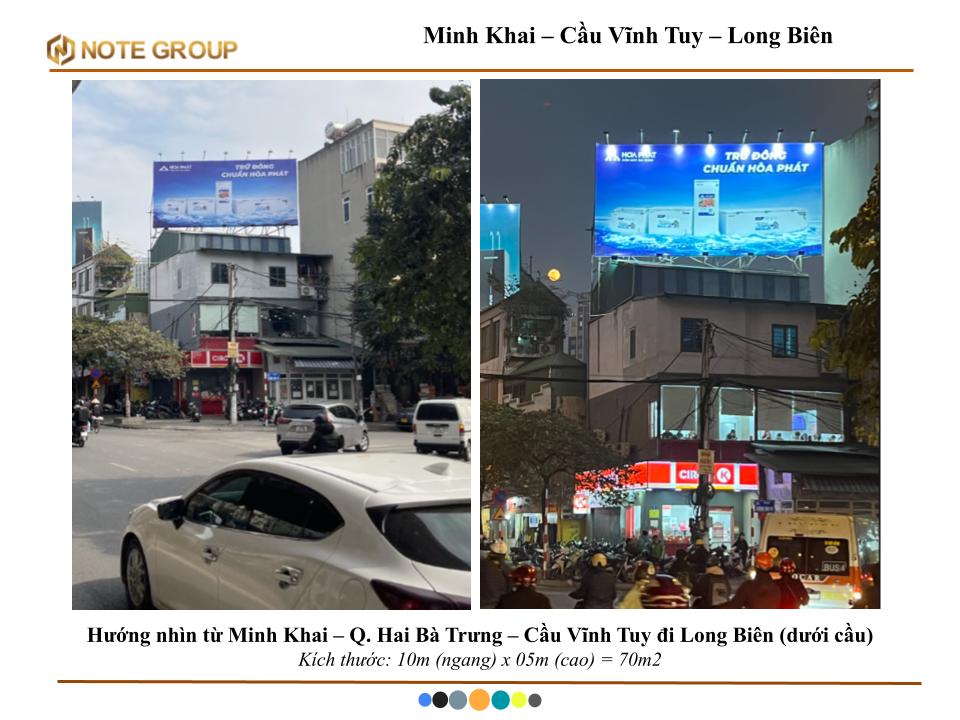 Bảng quảng cáo nằm tại phía bên phải cầu Vĩnh Tuy, hướng từ Minh Khai đi Long Biên – tuyến đường huyết mạch nối liền trung tâm nội đô với các khu vực đang phát triển mạnh mẽ như Long Biên, Gia Lâm và các tỉnh phía Đông.