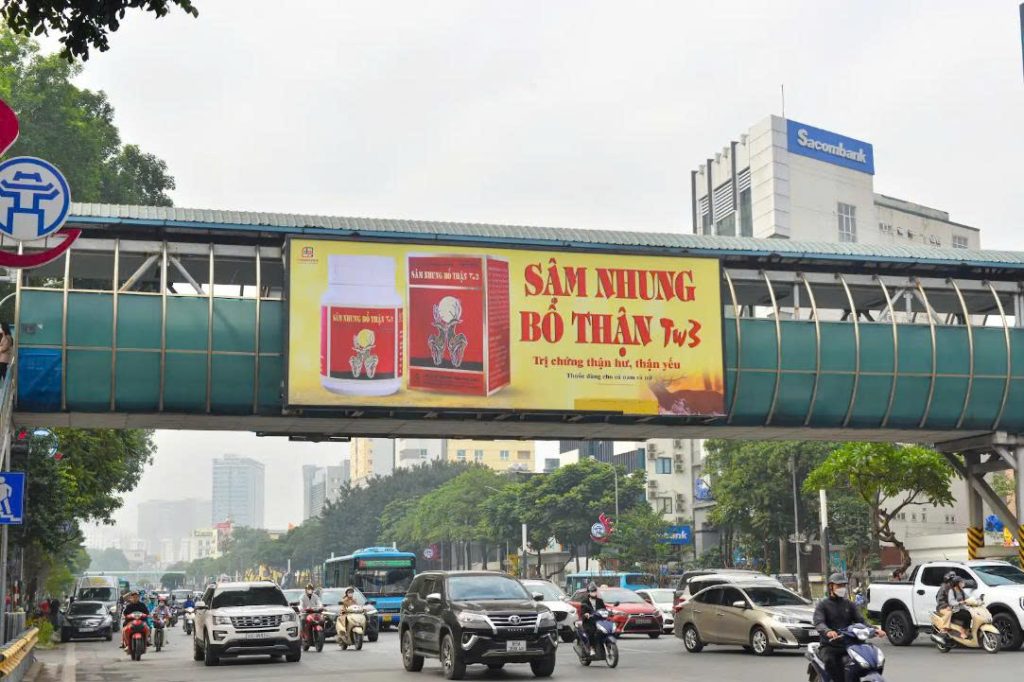 Biển quảng cáo hộp đèn trên cầu bộ hành Đại học Luật Hà Nội (HNC – 07) tại số 87 Nguyễn Chí Thanh, phường Láng Thượng, quận Đống Đa, TP. Hà Nội là một vị trí đắc địa để doanh nghiệp tiếp cận hàng nghìn lượt người qua lại mỗi ngày.